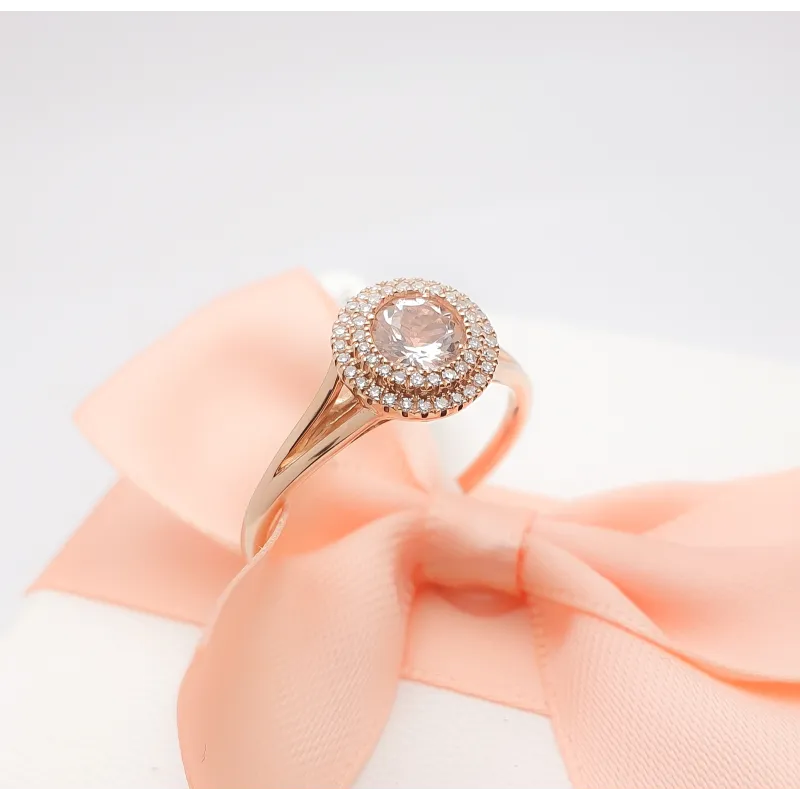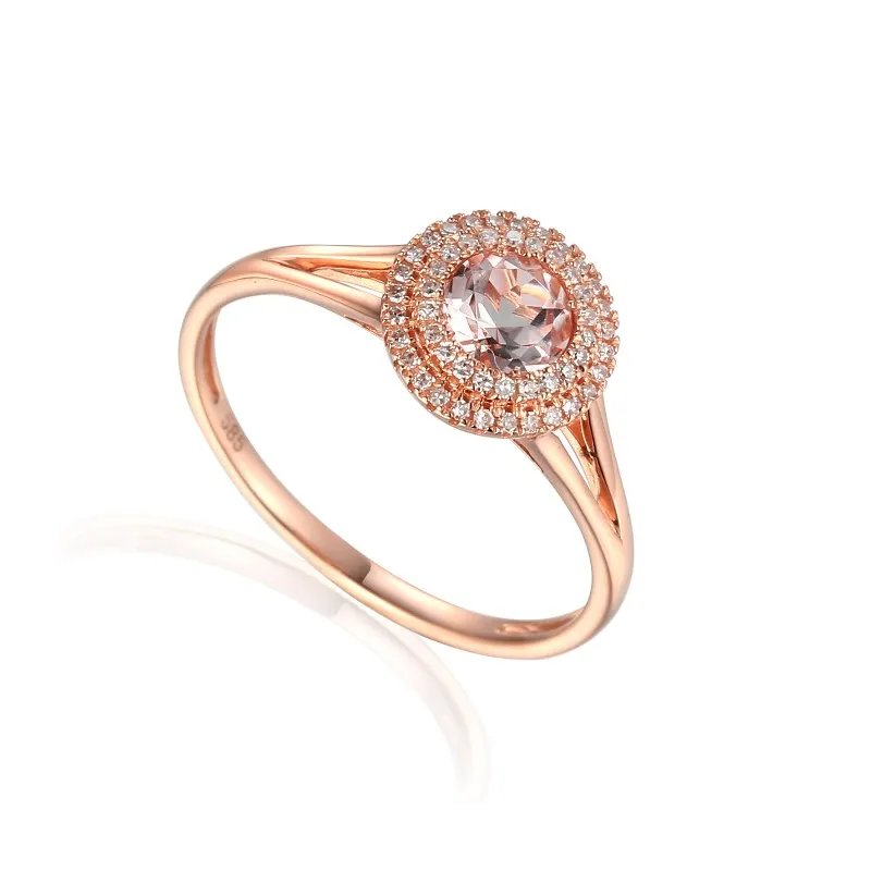 Złoty 585 Pierścionek z Morganitem i Diamentami