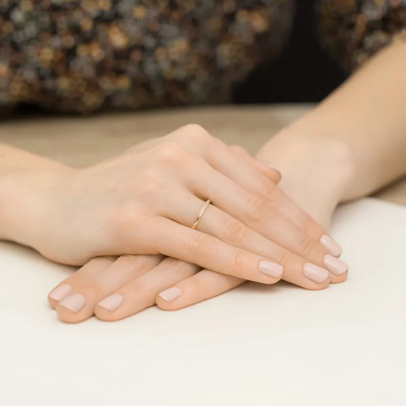 Złoty Delikatny Pierścionek Obrączka z Brylantami (na zamówienie)