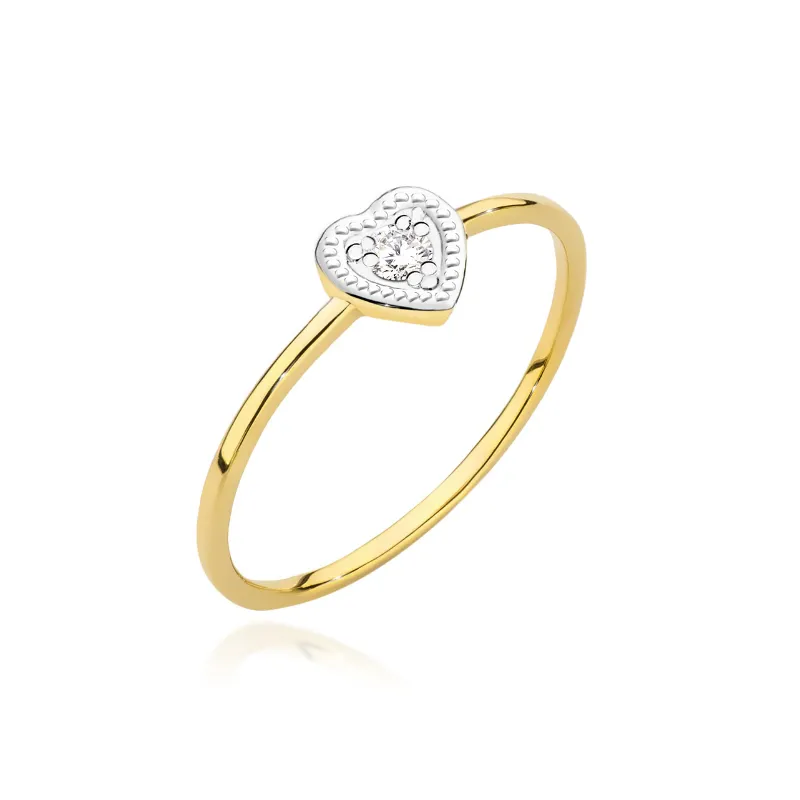 Pierścionek Serduszko z Brylantami Żółte Złoto (na zamówienie)