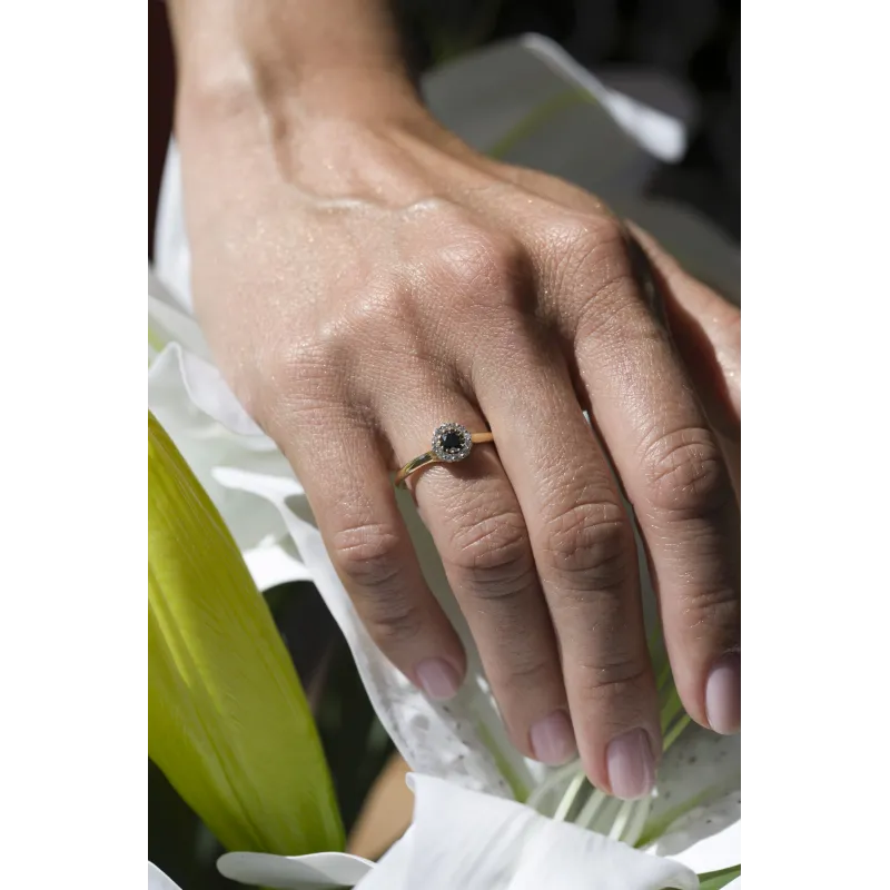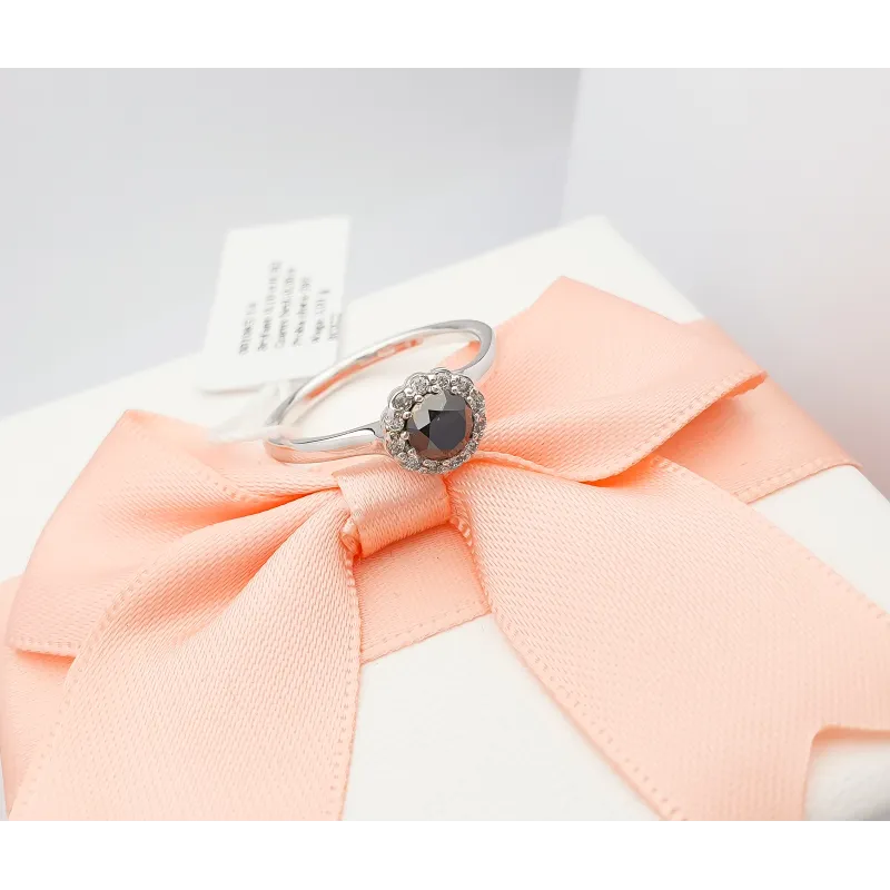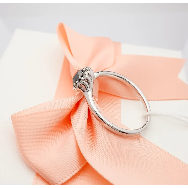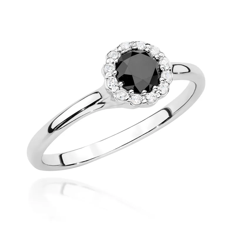 Złoty Pierścionek z Czarnym Brylantem Białe Złoto (na zamówienie)