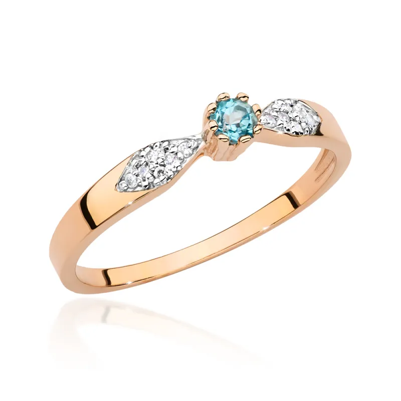 Złoty Zaręczynowy Pierścionek Topaz Brylanty (na zamówienie)