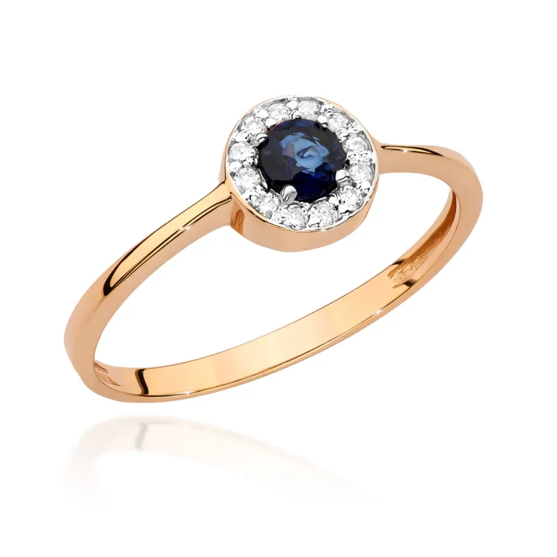 Złoty Zaręczynowy Pierścionek Szafir Brylanty (na zamówienie)