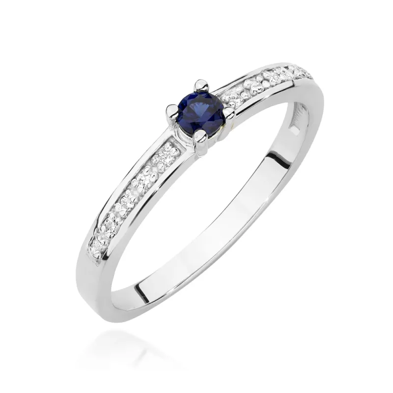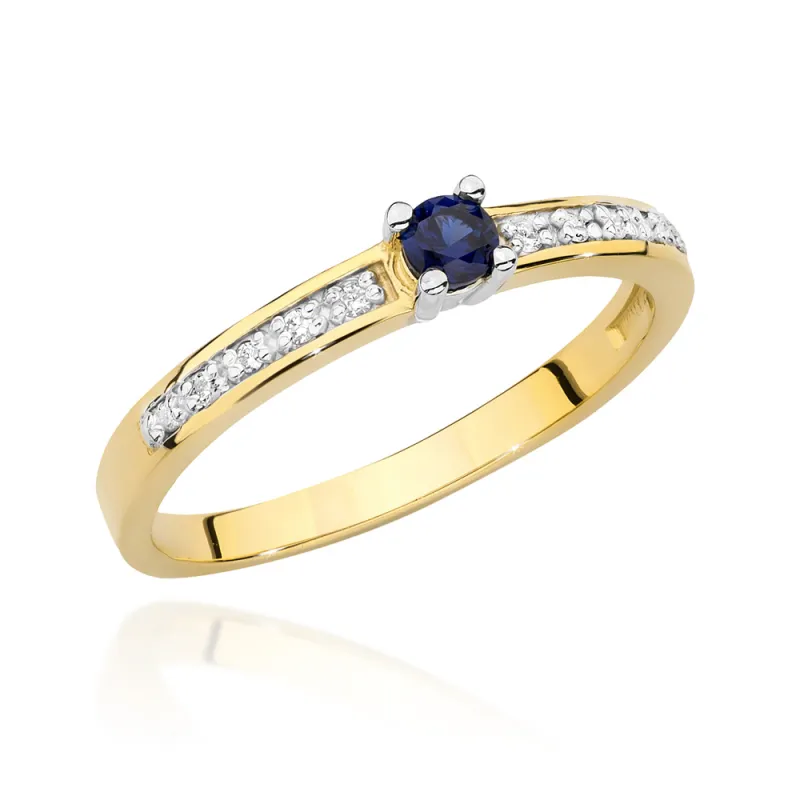 Złoty Zaręczynowy Pierścionek Szafir Brylanty (na zamówienie)