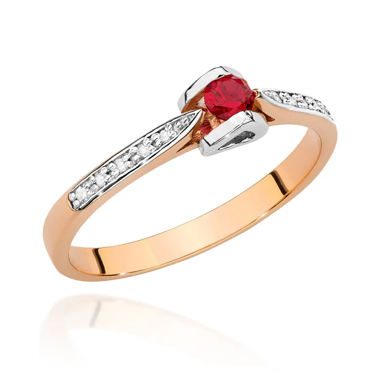 Złoty Pierścionek Rubin Brylanty Różowe Złoto (na zamówienie)