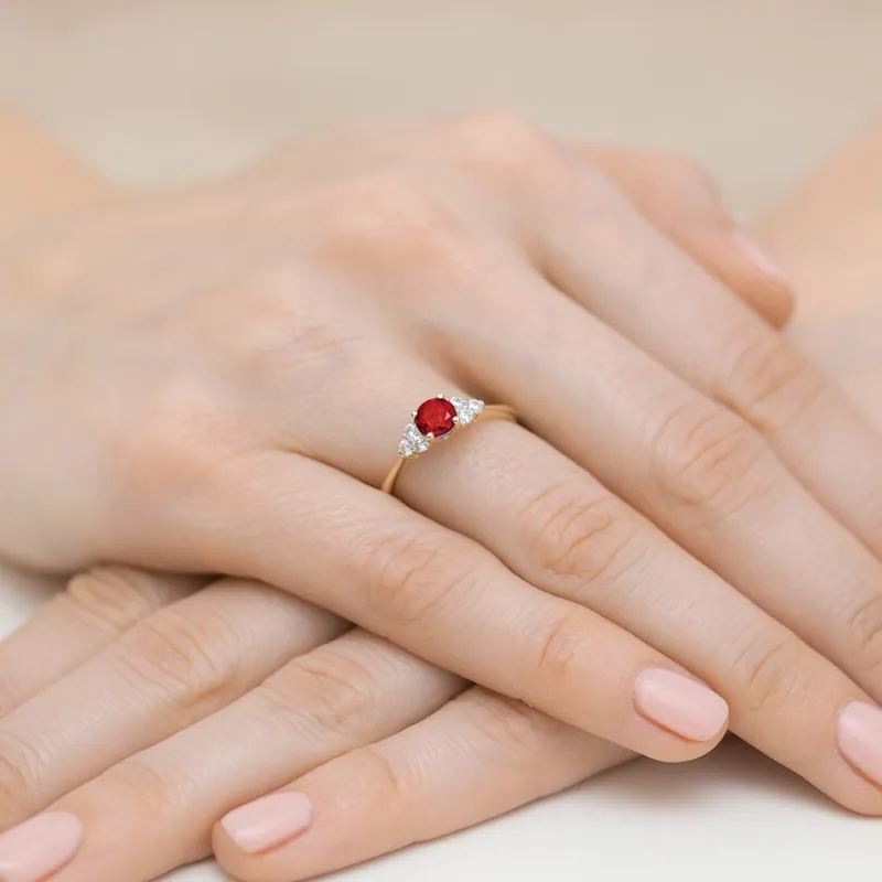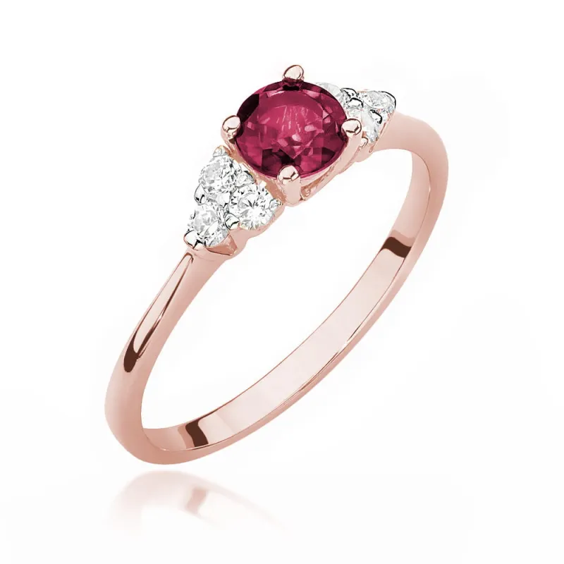 Pierścionek Zaręczynowy Rubin Diamenty Białe Złoto