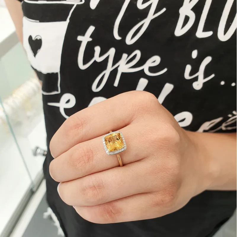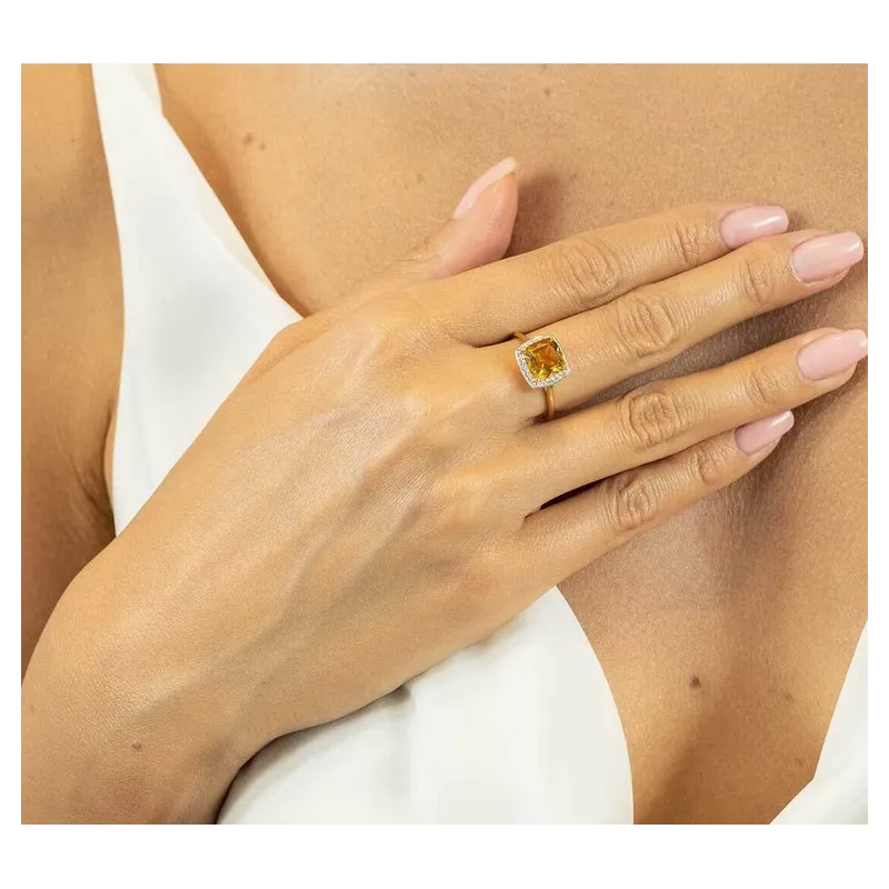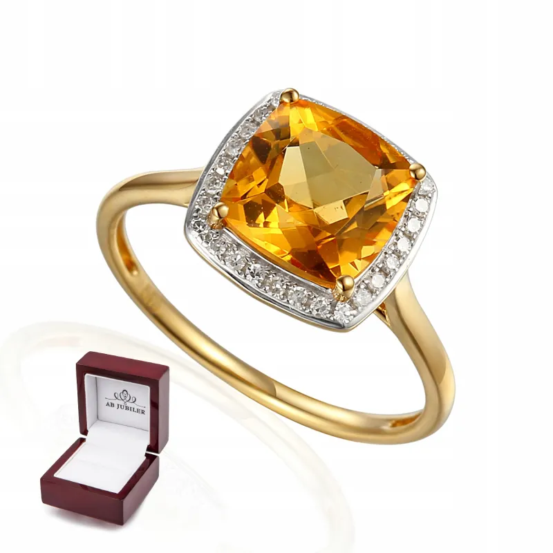 ZŁOTY PIERŚCIONEK DUŻY KAMIEŃ CYTRYN I DIAMENTY