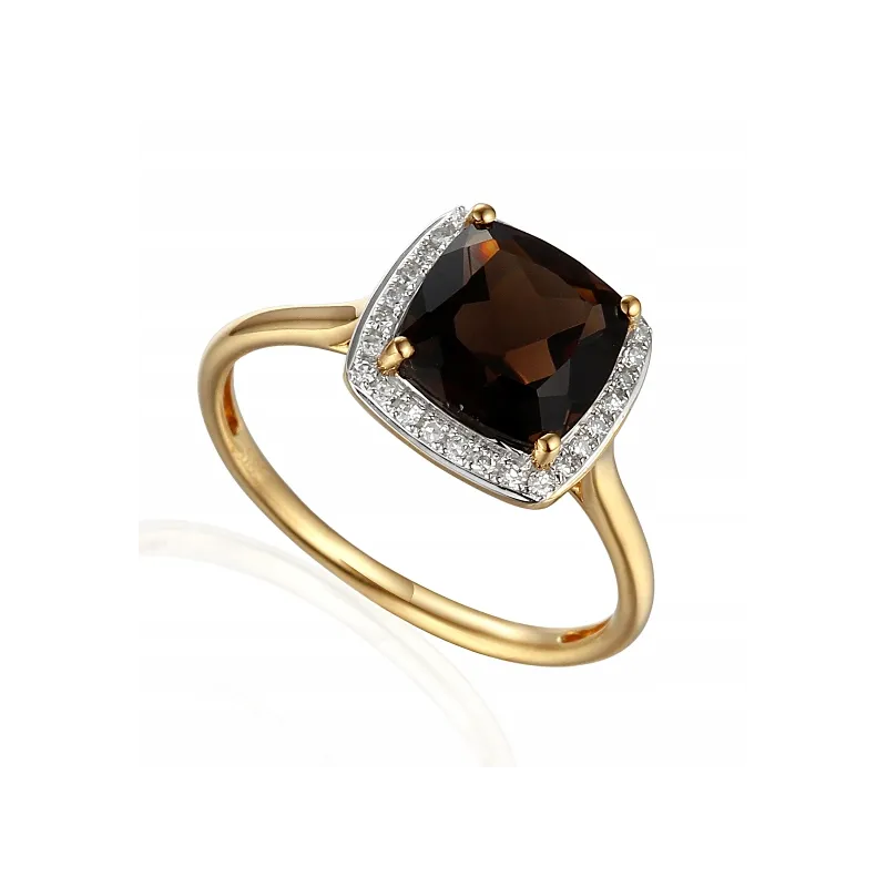 ZŁOTY PIERŚCIONEK DUŻY KAMIEŃ KWARC DIAMENTY 585