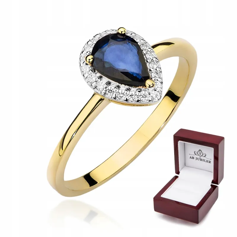 Złoty Pierścionek Zaręczynowy Szafir Diamenty
