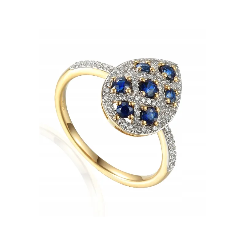 Złoty Elegancki 585 Pierścionek Szafiry Diamenty (NA ZAMÓWIENIE)
