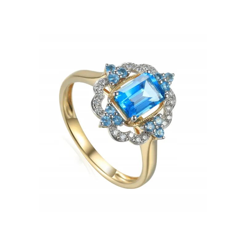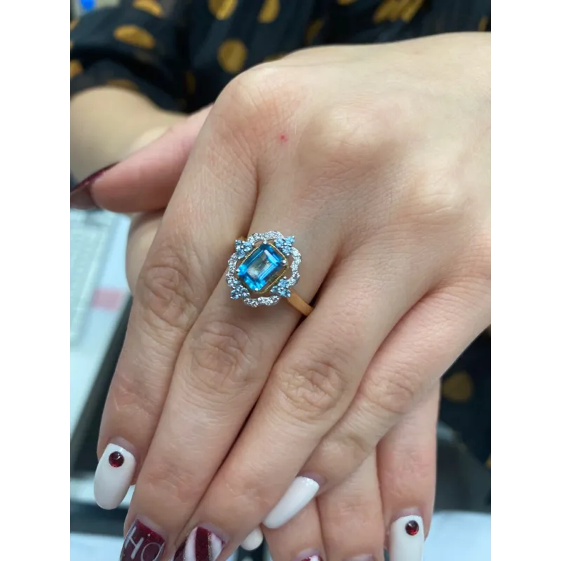 ZŁOTY PIERŚCIONEK TOPAZ DIAMENTY PRÓBA 585