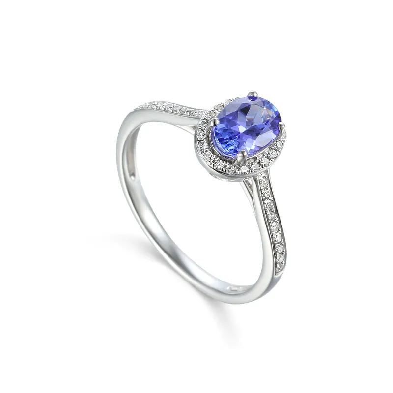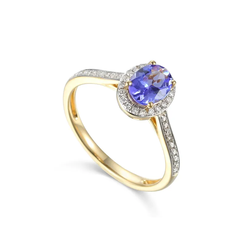 ZŁOTY 585 PIERŚCIONEK TANZANIT DIAMENTY PREZENT