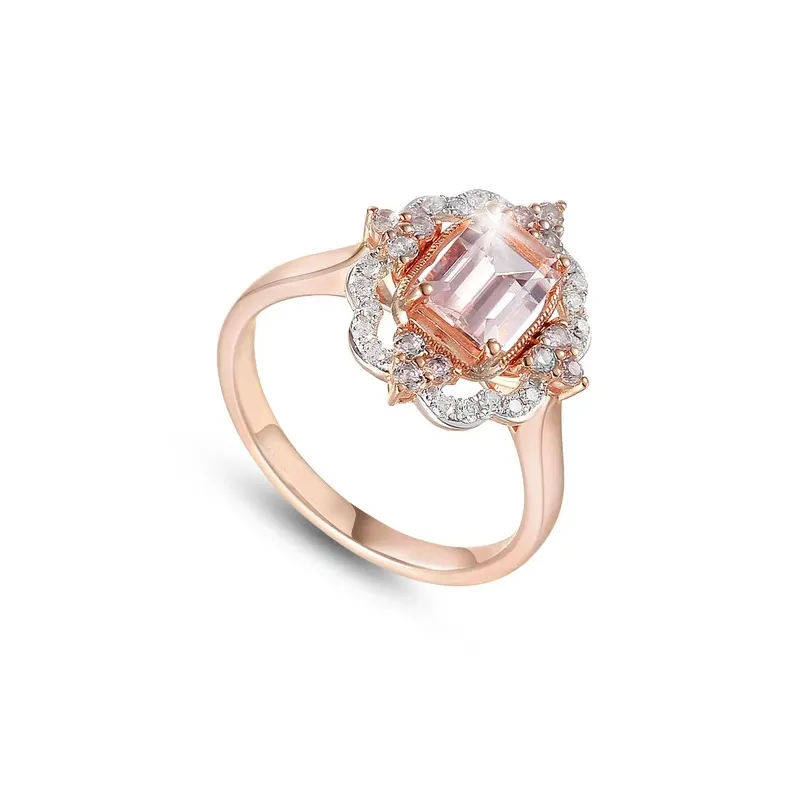 PIERŚCIONEK MORGANIT DIAMENTY 585 RÓŻOWE ZŁOTO