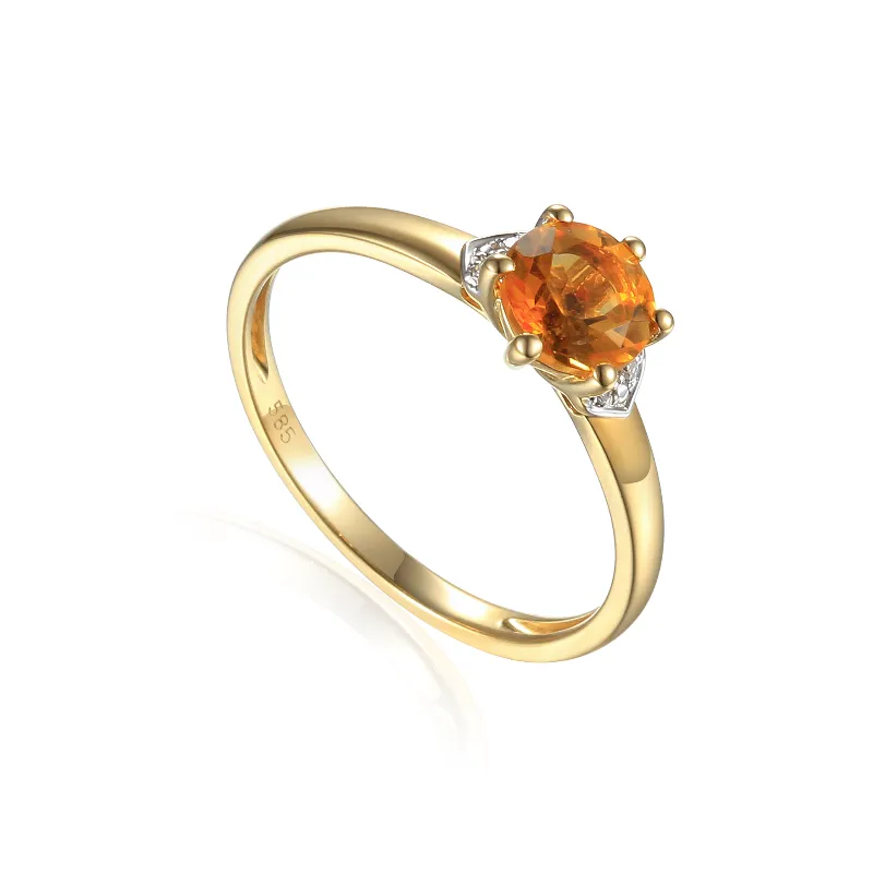 ZŁOTY PIERŚCIONEK 585 CYTRYN DIAMENTY PREZENT ( NA ZAMÓWIENIE )