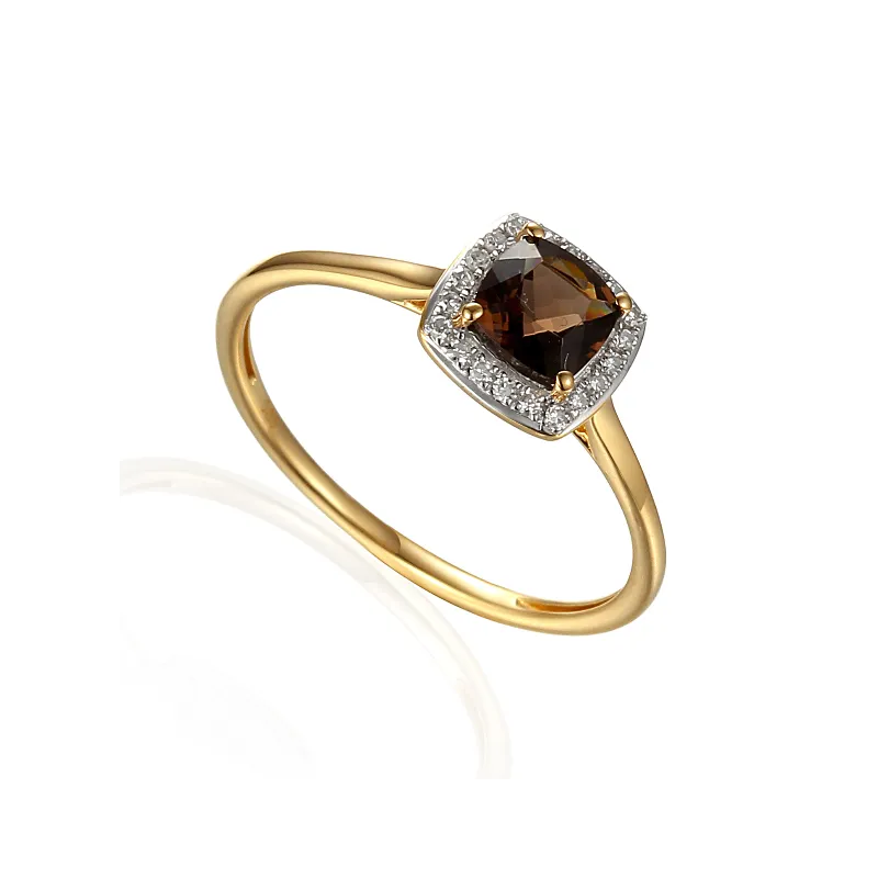 ZŁOTY 14K PIERŚCIONEK Z KWARCEM I DIAMENTAMI ( NA ZAMÓWIENIE)