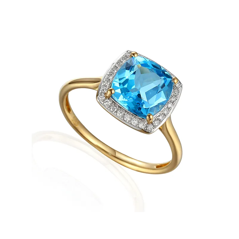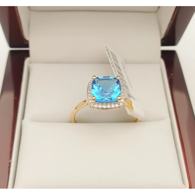 PIERŚCIONEK ZŁOTY DUŻY TOPAZ DIAMENTY PRÓBA 585 ( NA ZAMÓWIENIE)