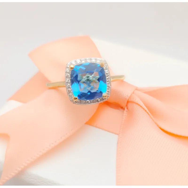• Kamień: TOPAZ ok 2.40ct (8/8mm), DIAMENT 28x ok 0.11ct