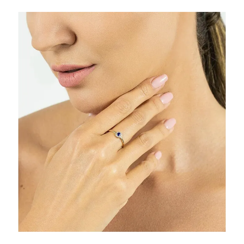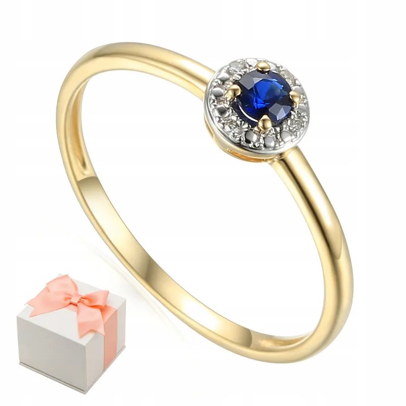 ZŁOTY PIERŚCIONEK SZAFIR DIAMENTY PRÓBA 585