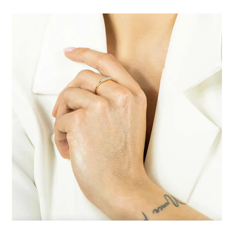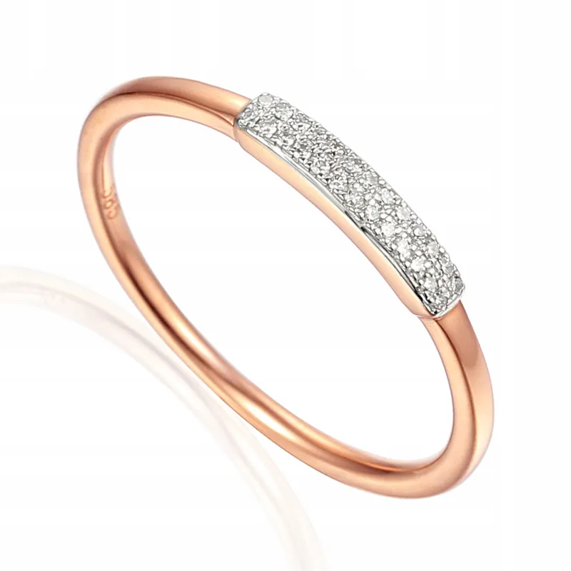 ZŁOTY DELIKATNY 585 PIERŚCIONEK DIAMENTY PREZENT