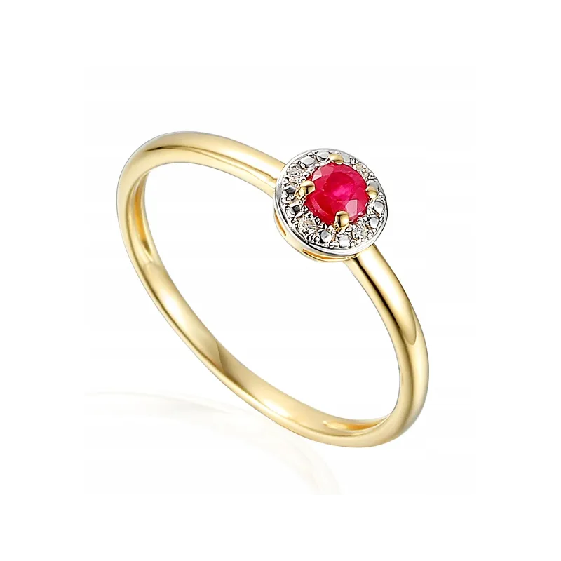 ZŁOTY 585 PIERŚCIONEK RUBIN I DIAMENTY NA PREZENT