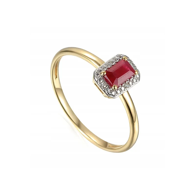 ZŁOTY ZARĘCZYNOWY 585 PIERŚCIONEK RUBIN DIAMENTY ( NA ZAMÓWIENIE )