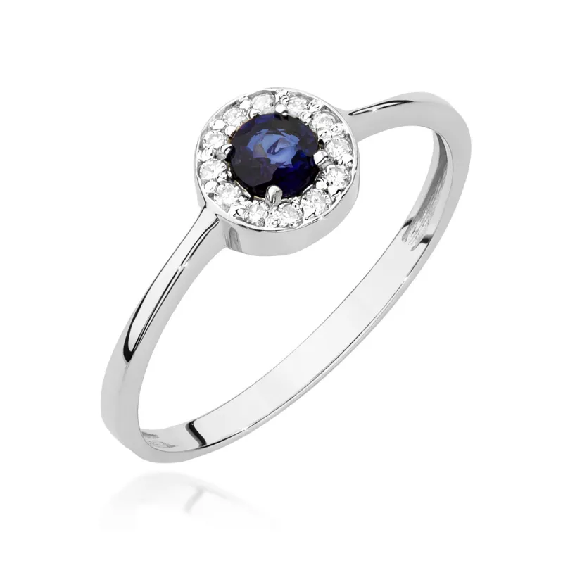 Złoty 585 Zaręczynowy Pierścionek Szafir i Brylanty