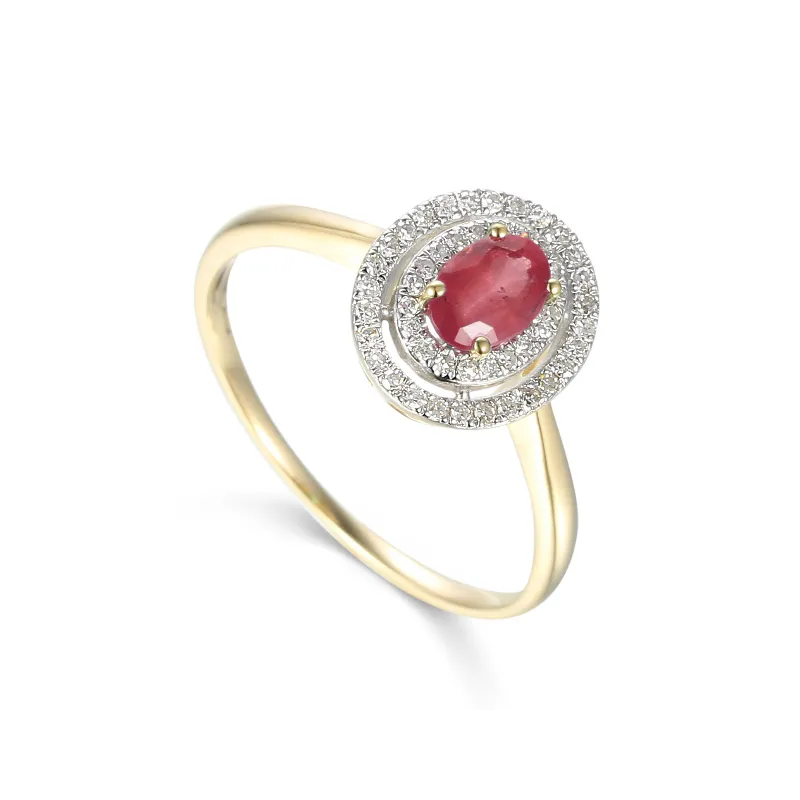 ZŁOTY PIERŚCIONEK 585 RUBIN I DIAMENTY NA PREZENT