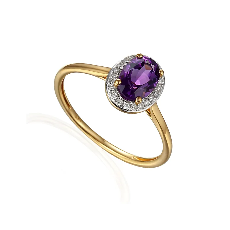 ZŁOTY ELEGANCKI 585 PIERŚCIONEK AMETYST I DIAMENTY ( NA ZAMÓWIENIE )