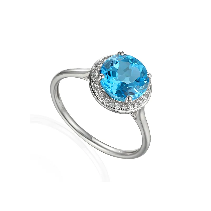 PIERŚCIONEK 585 DUŻY TOPAZ DIAMENTY BIAŁE ZŁOTO