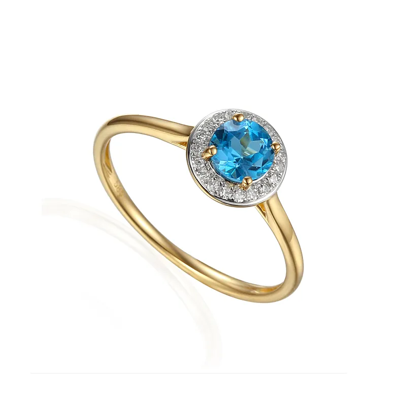 ZŁOTY PIERŚCIONEK TOPAZ DIAMENT PRÓBA 585 PREZENT