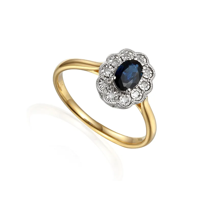 ZŁOTY 585 PIERŚCIONEK SZAFIR I DIAMENTY NA PREZENT ( NA ZAMÓWIENIE )