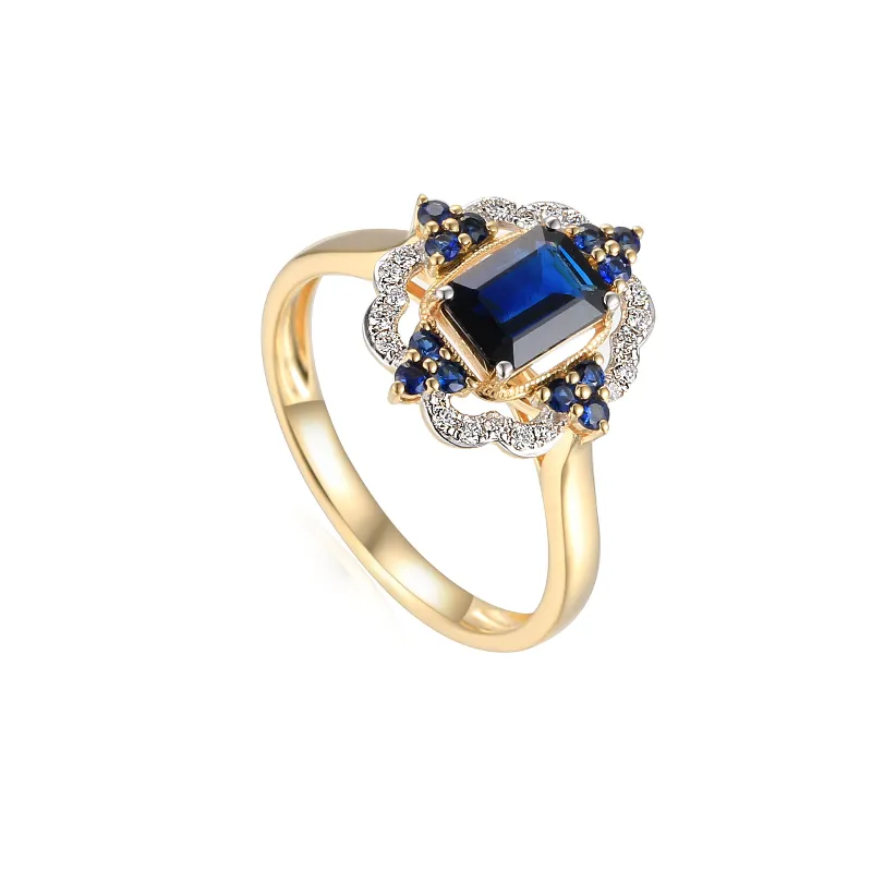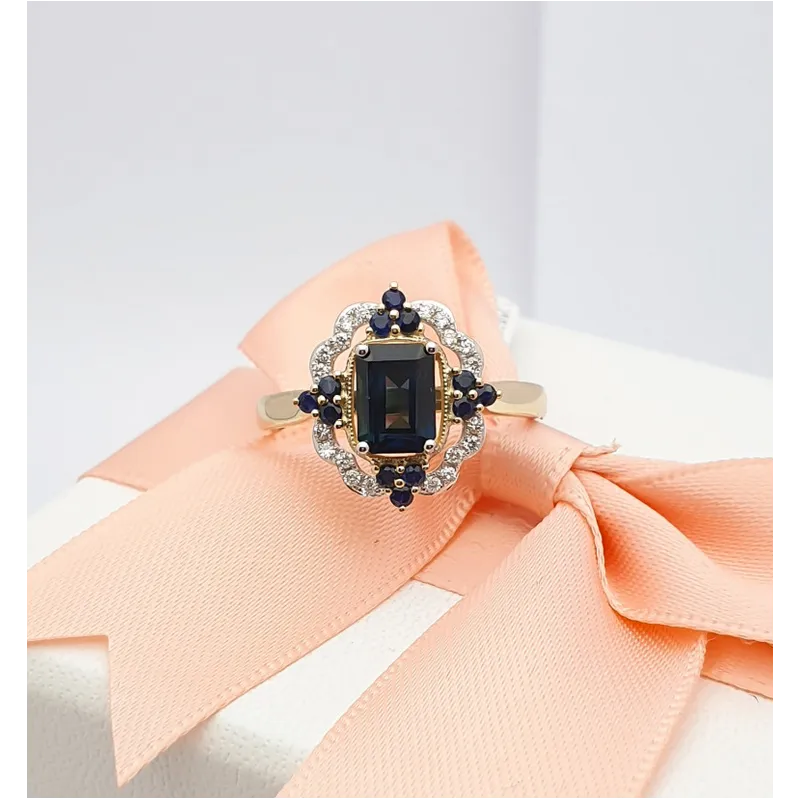 ZŁOTY 585 PIERŚCIONEK SZAFIR DIAMENTY GRAWER ( NA ZAMÓWIENIE )