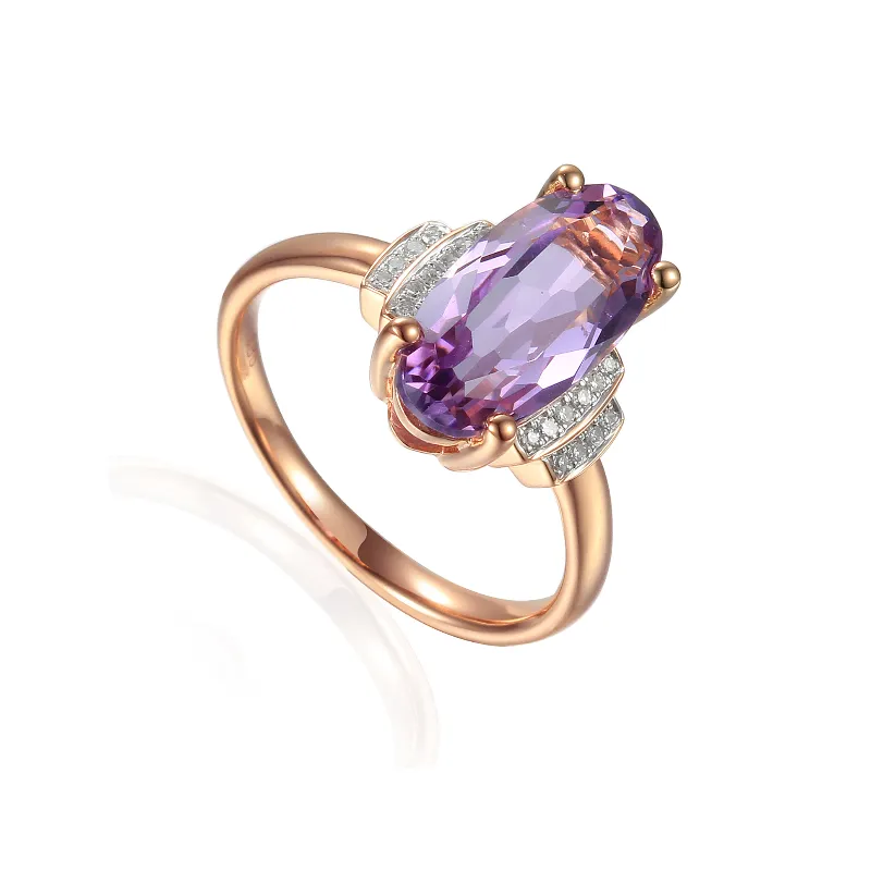 PIERŚCIONEK 585 AMETYST DIAMENTY RÓŻOWY ( NA ZAMÓWIENIE )
