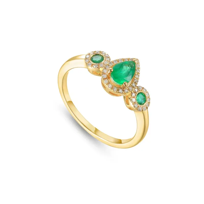 PIERŚCIONEK BIAŁE ZŁOTO 585 SZMARAGD DIAMENTY ( NA ZAMÓWIENIE )