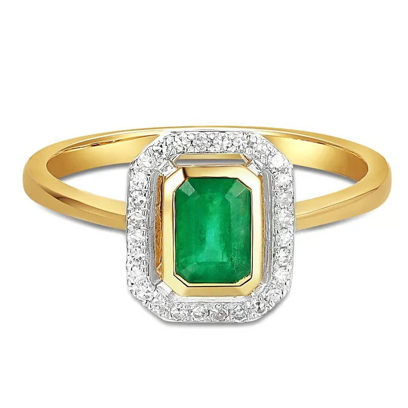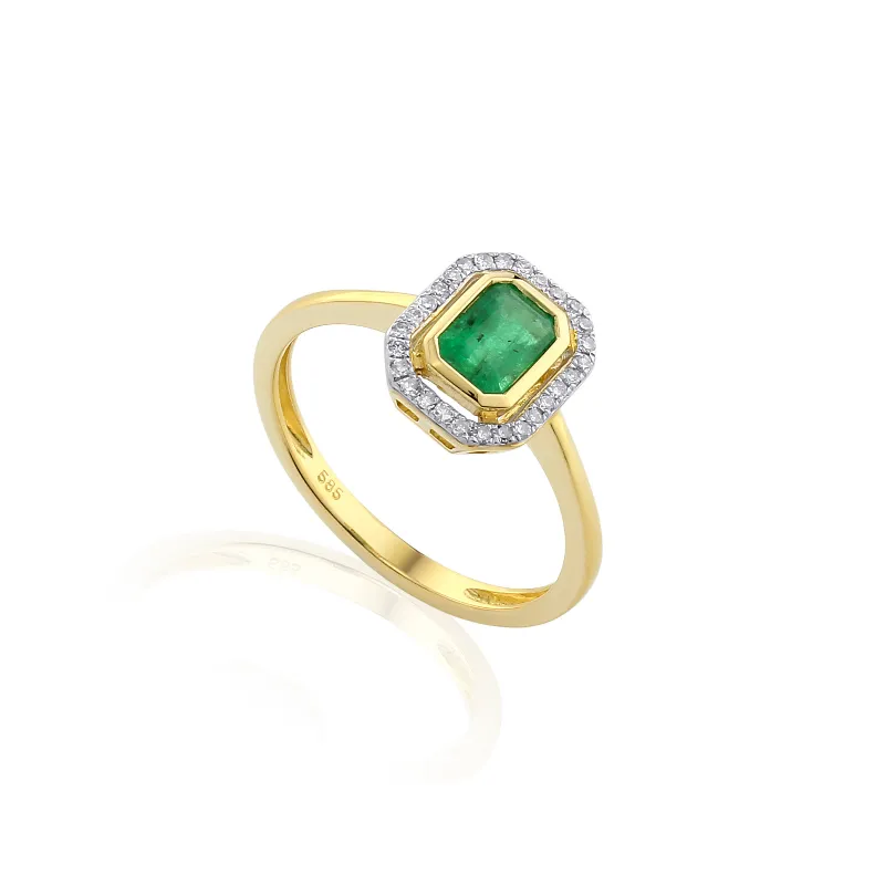 ZŁOTY 585 PIERŚCIONEK SZMARAGD I DIAMENTY ( NA ZAMÓWIENIE )