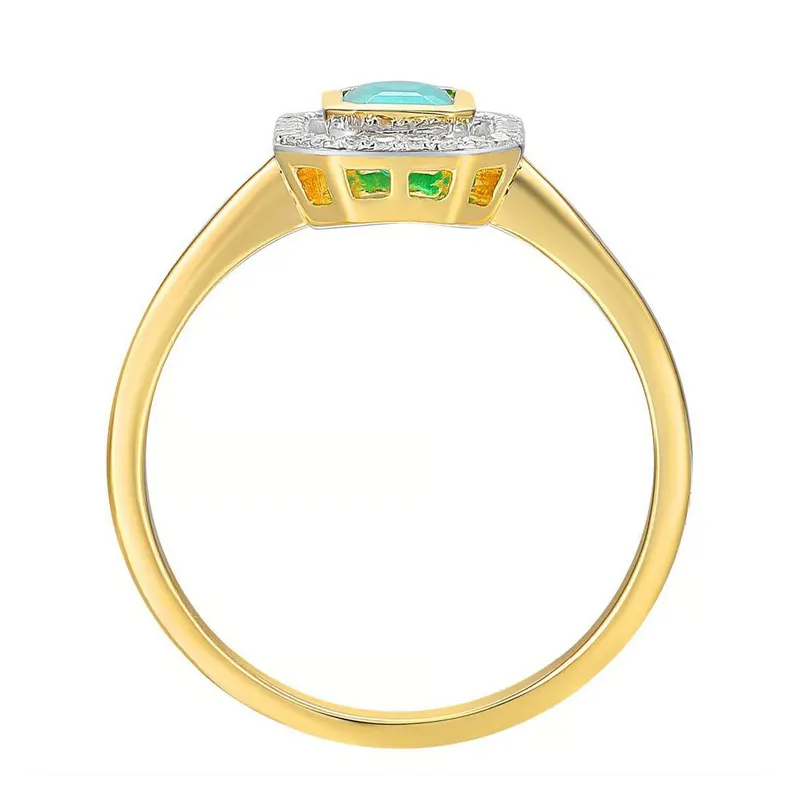 ZŁOTY 585 PIERŚCIONEK SZMARAGD I DIAMENTY