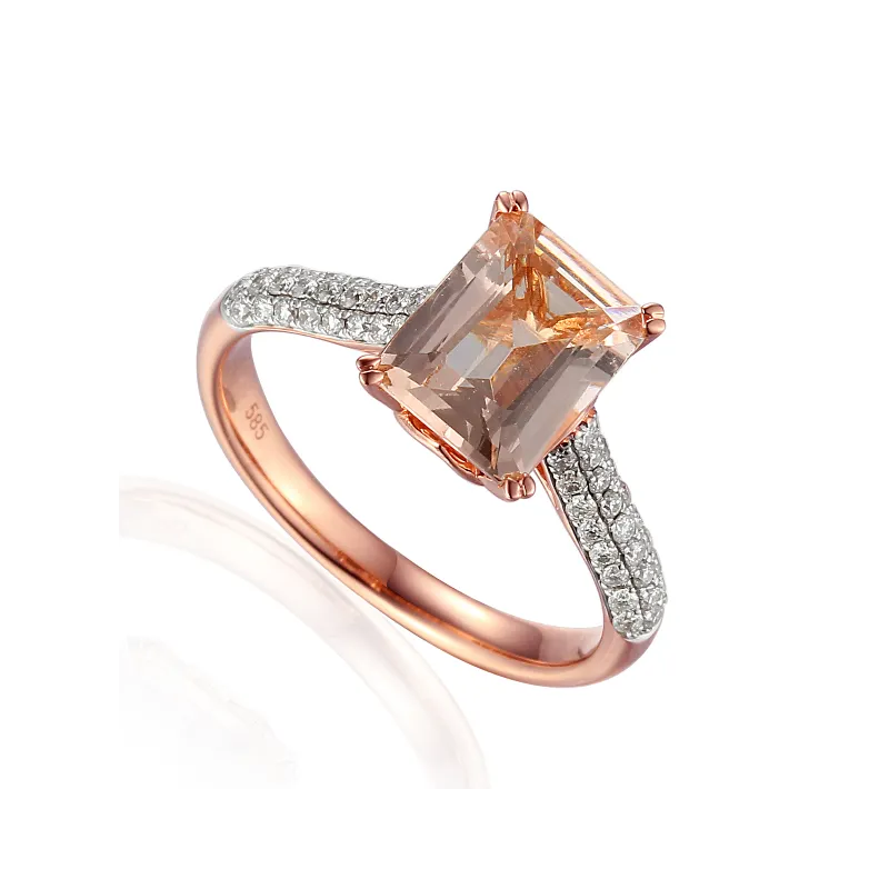 PIERŚCIONEK RÓŻOWE ZŁOTO 585 MORGANIT DIAMENTY ( NA ZAMÓWIENIE )