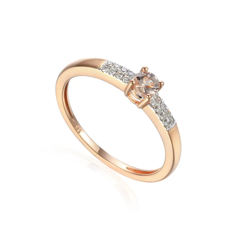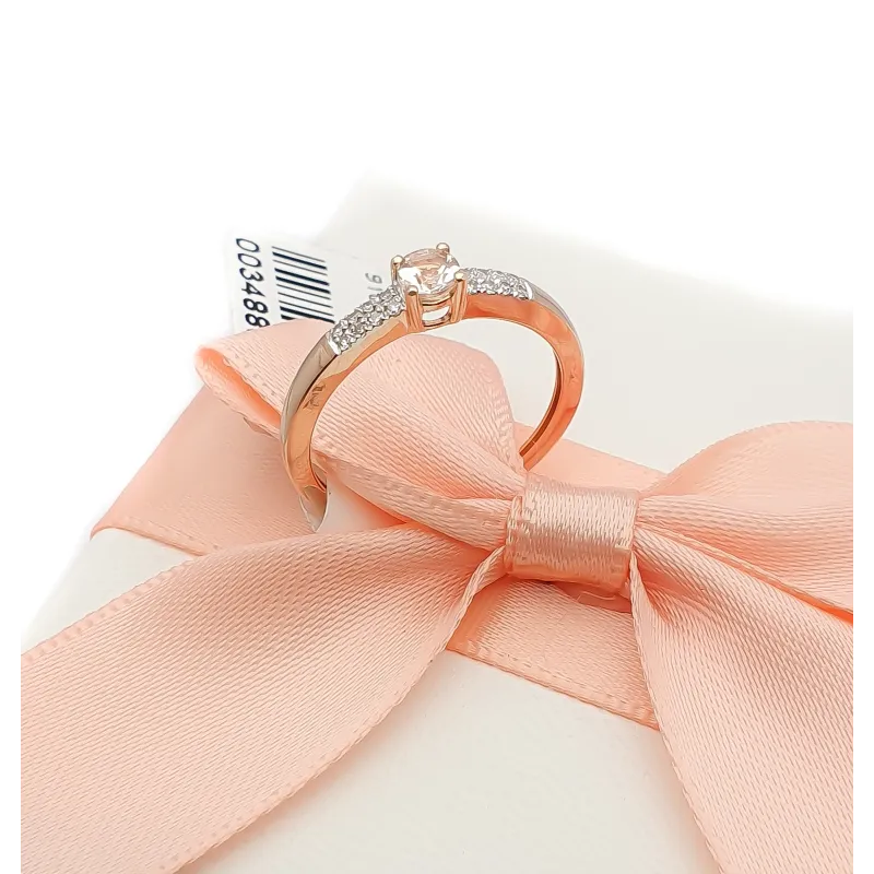 PIERŚCIONEK MORGANIT DIAMENTY RÓŻOWE ZŁOTO 585 ( NA ZAMÓWIENIE )