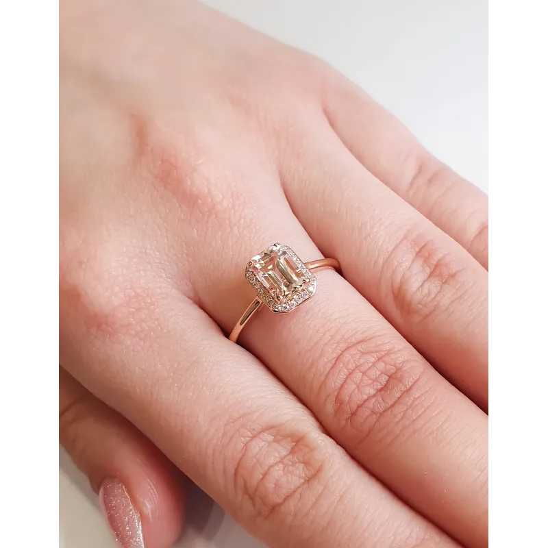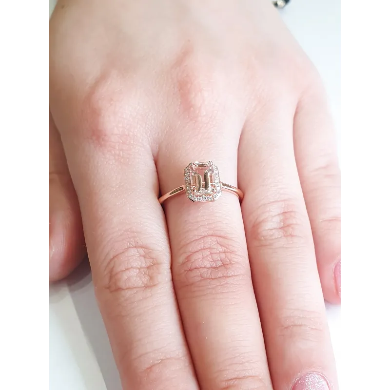 PIERŚCIONEK MORGANIT DIAMENTY PRÓBA 585 ( NA ZAMÓWIENIE )