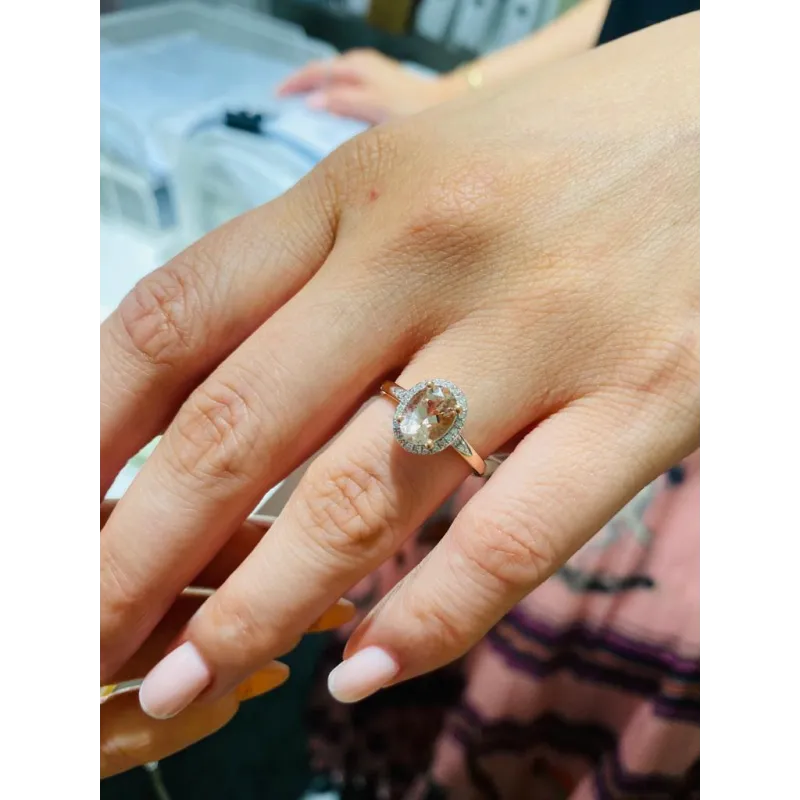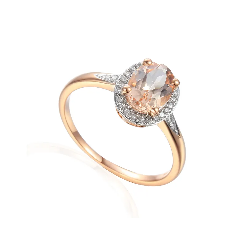 Pierścionek 585 Morganit Diamenty Różowe Złoto
