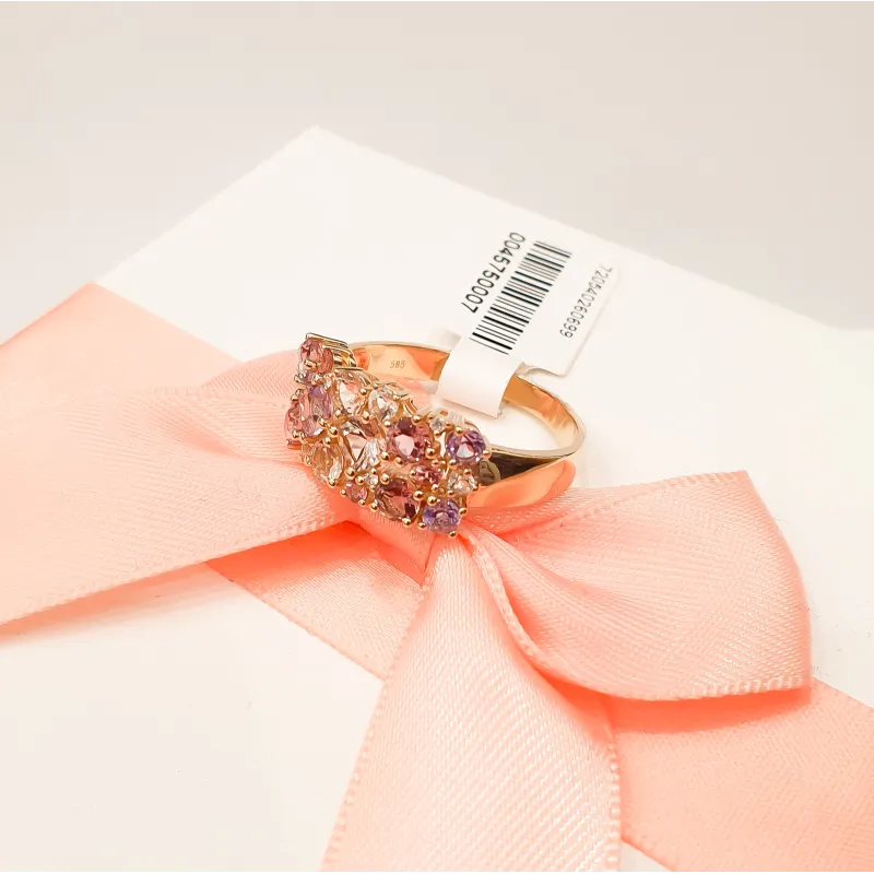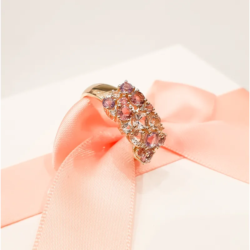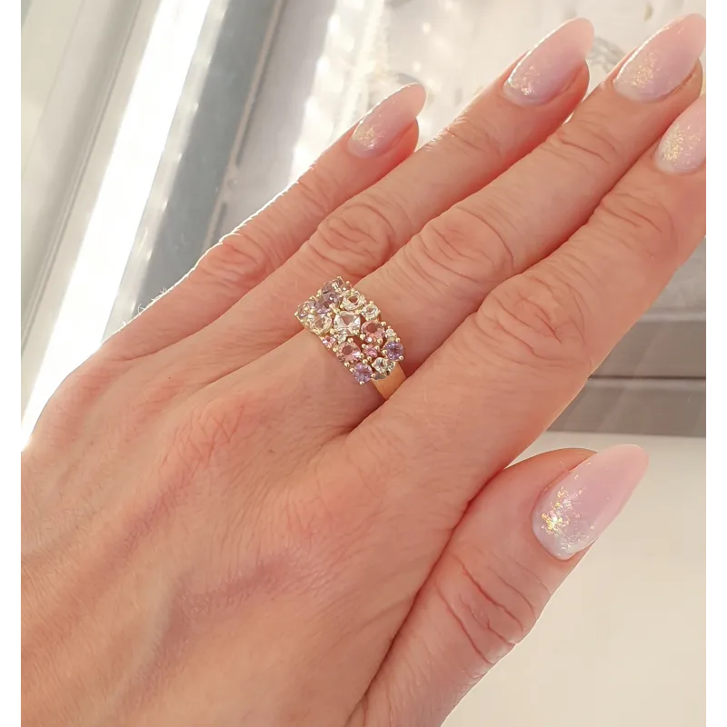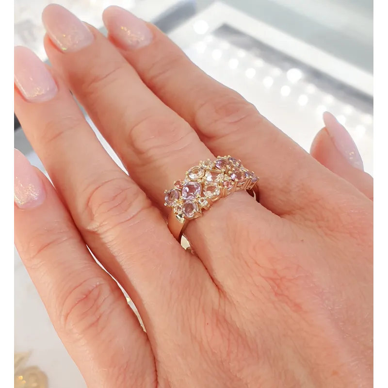 Pierścionek Morganit Biały Topaz Ametyst Diamenty