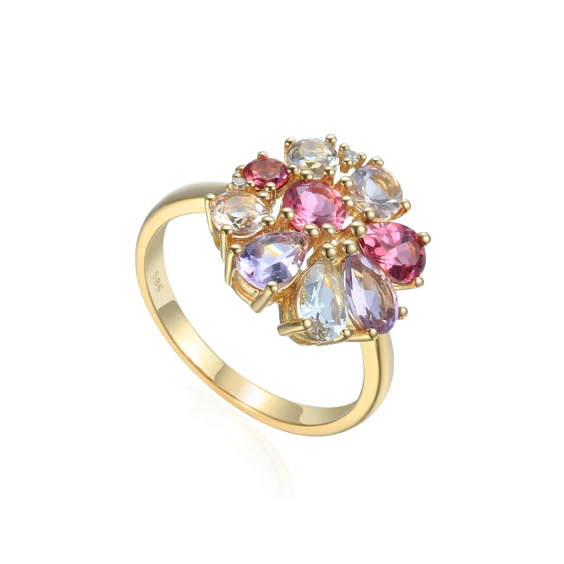 Pierścionek Morganit Biały Topaz Ametyst Diamenty