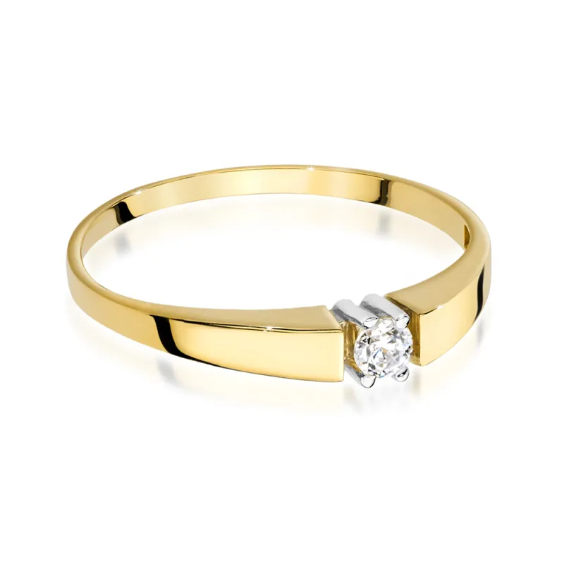 Złoty 14K Pierścionek Zaręczynowy Brylant Grawer