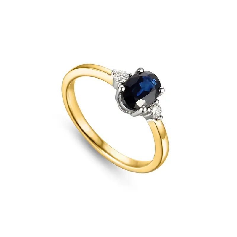 Pierścionek 585 Szafir Diamenty Żółto Białe Złoto