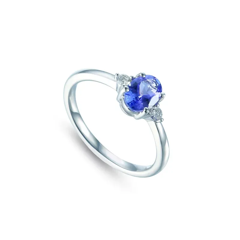 Pierścionek Tanzanit Diamenty pr 585 Białe Złoto
