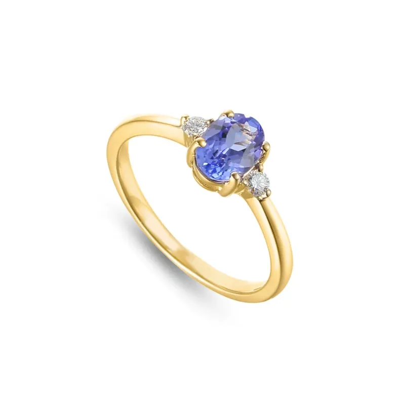 Złoty Pierścionek Tanzanit Diamenty Grawer pr 585