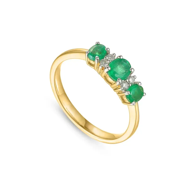 Złoty Pierścionek Szmaragd Diamenty 585 Grawer