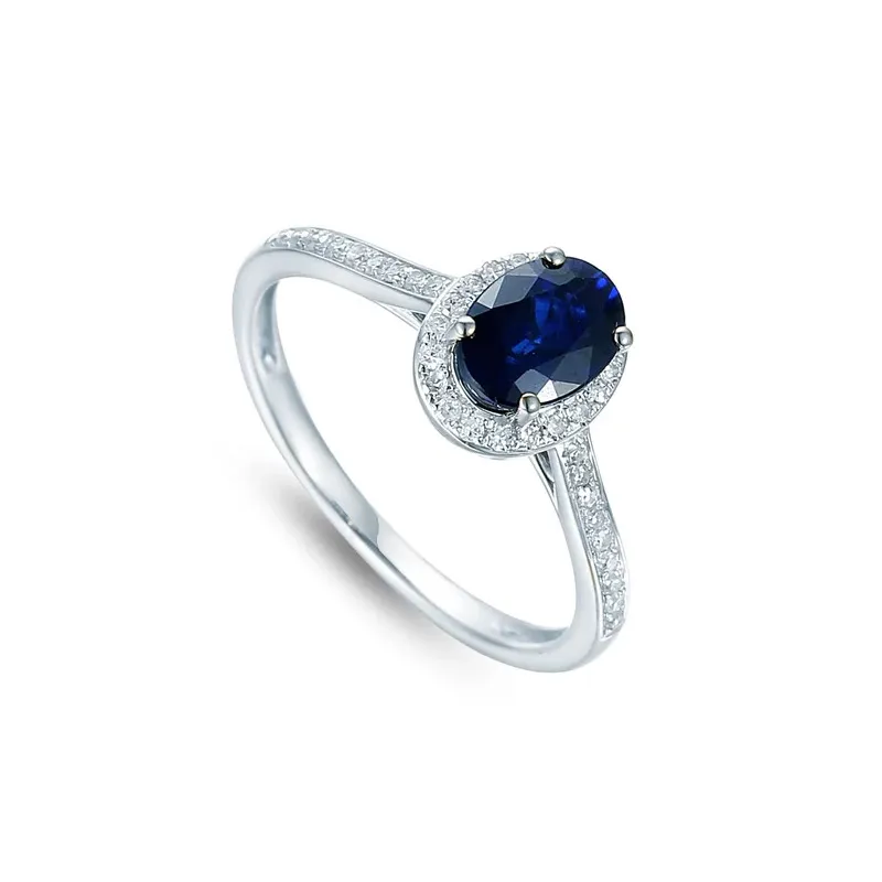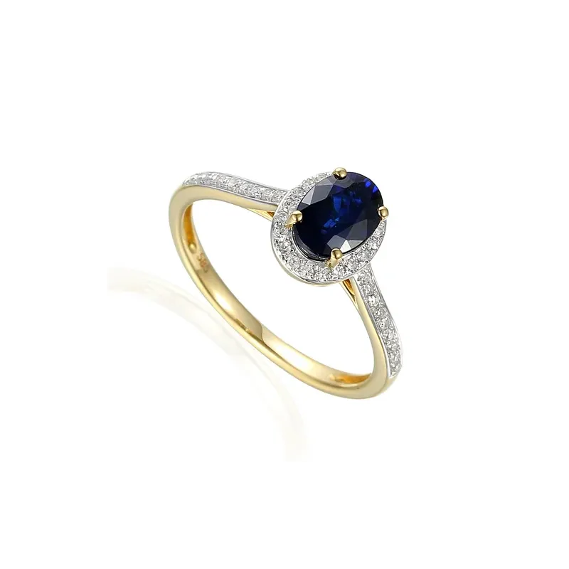 ZŁOTY ZARĘCZYNOWY PIERŚCIONEK Z SZAFIREM BRYLANTY GRAWER
