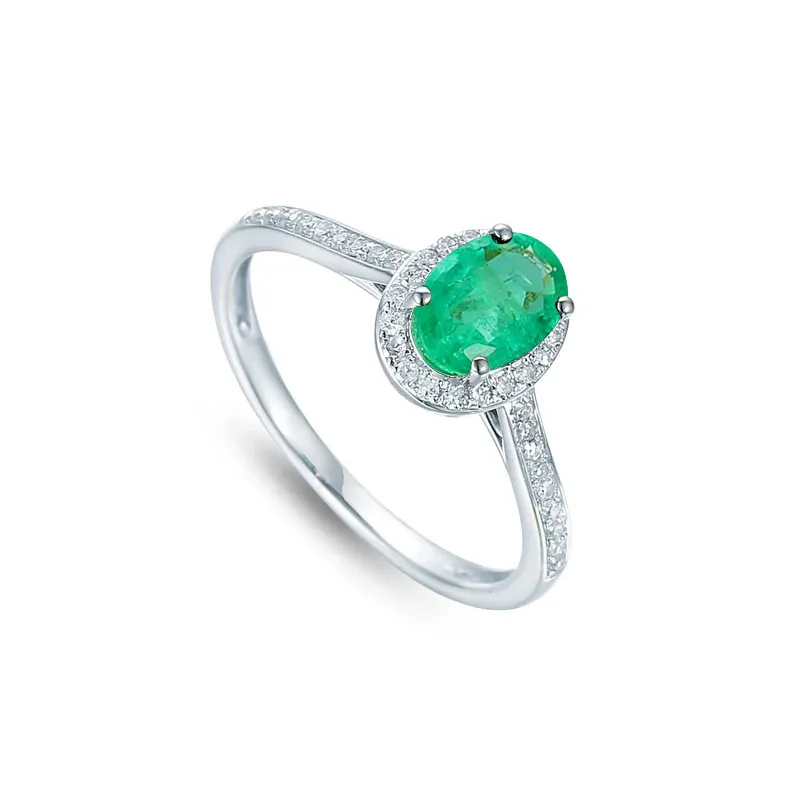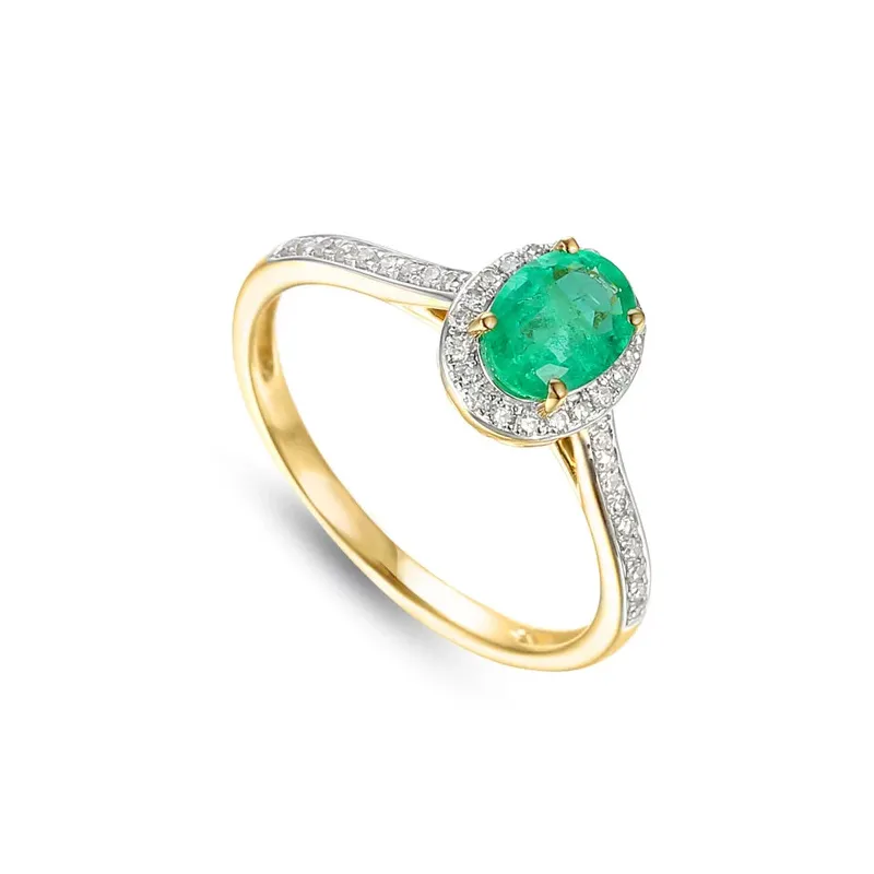 PIERŚCIONEK 585 SZMARAGD DIAMENTY BIAŁE ZŁOTO