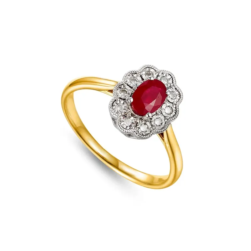 ZŁOTY PIERŚCIONEK RUBIN DIAMENTY GRAWER PRÓBA 585 ( NA ZAMÓWIENIE )