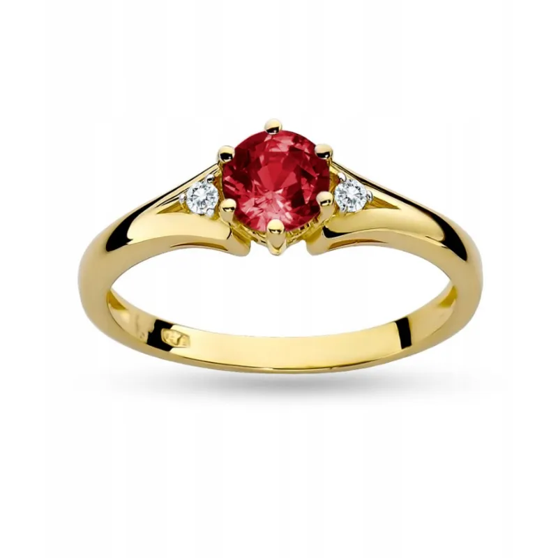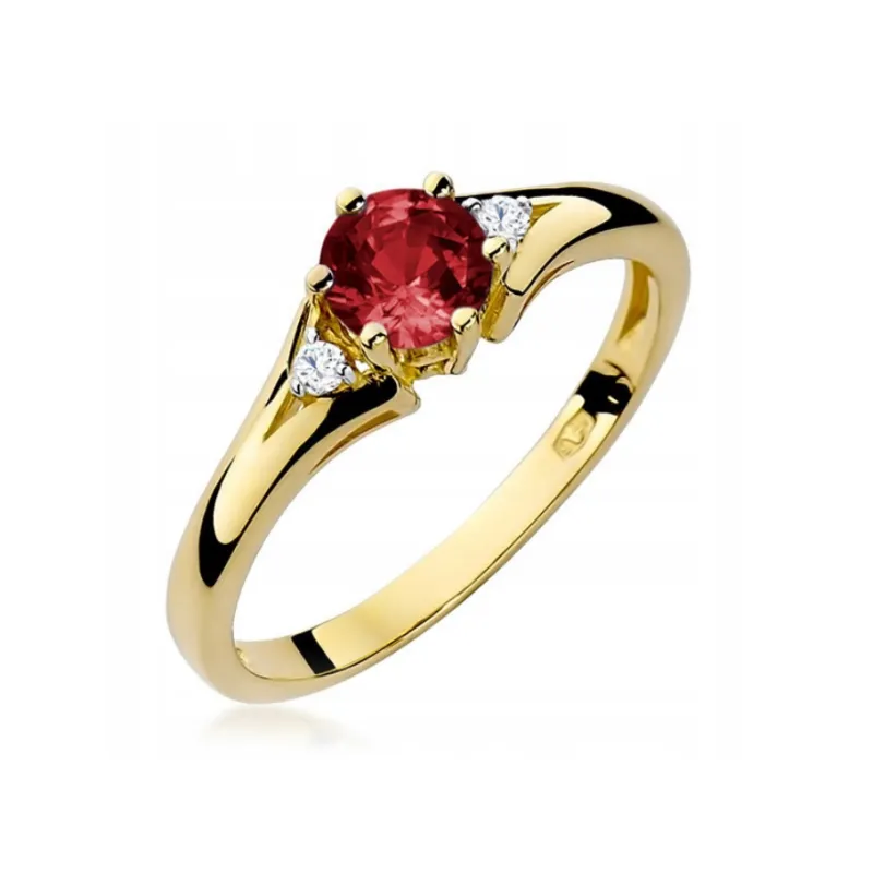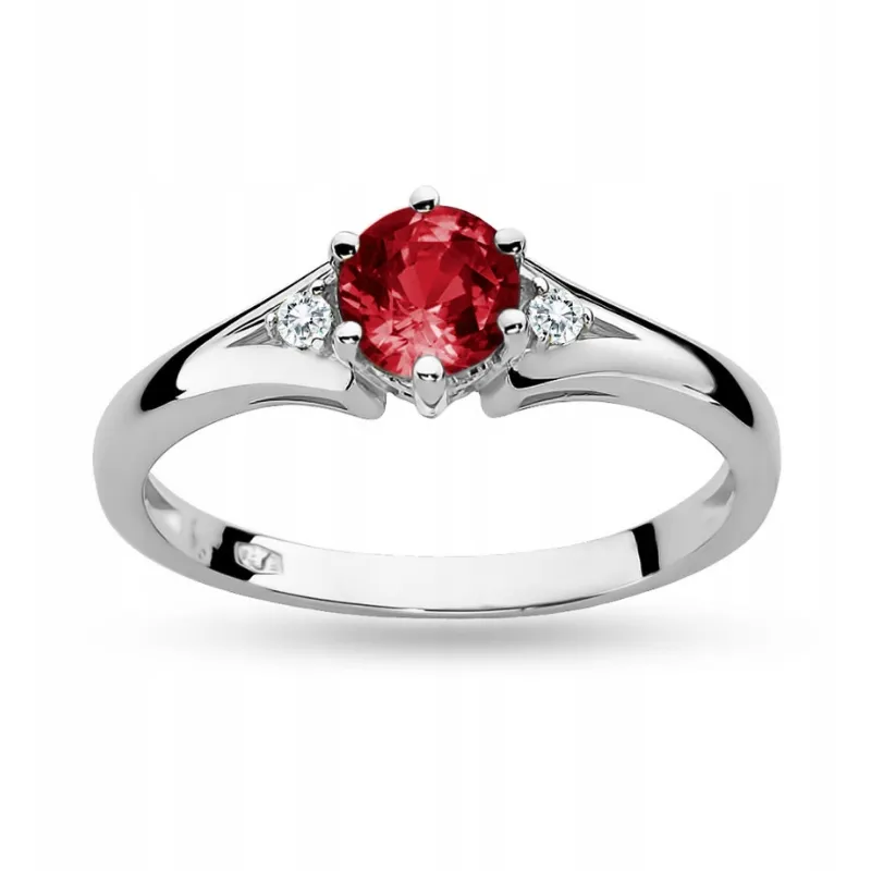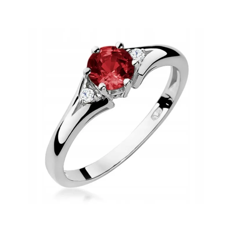Złoty Zaręczynowy Pierścionek Rubin Białe Złoto